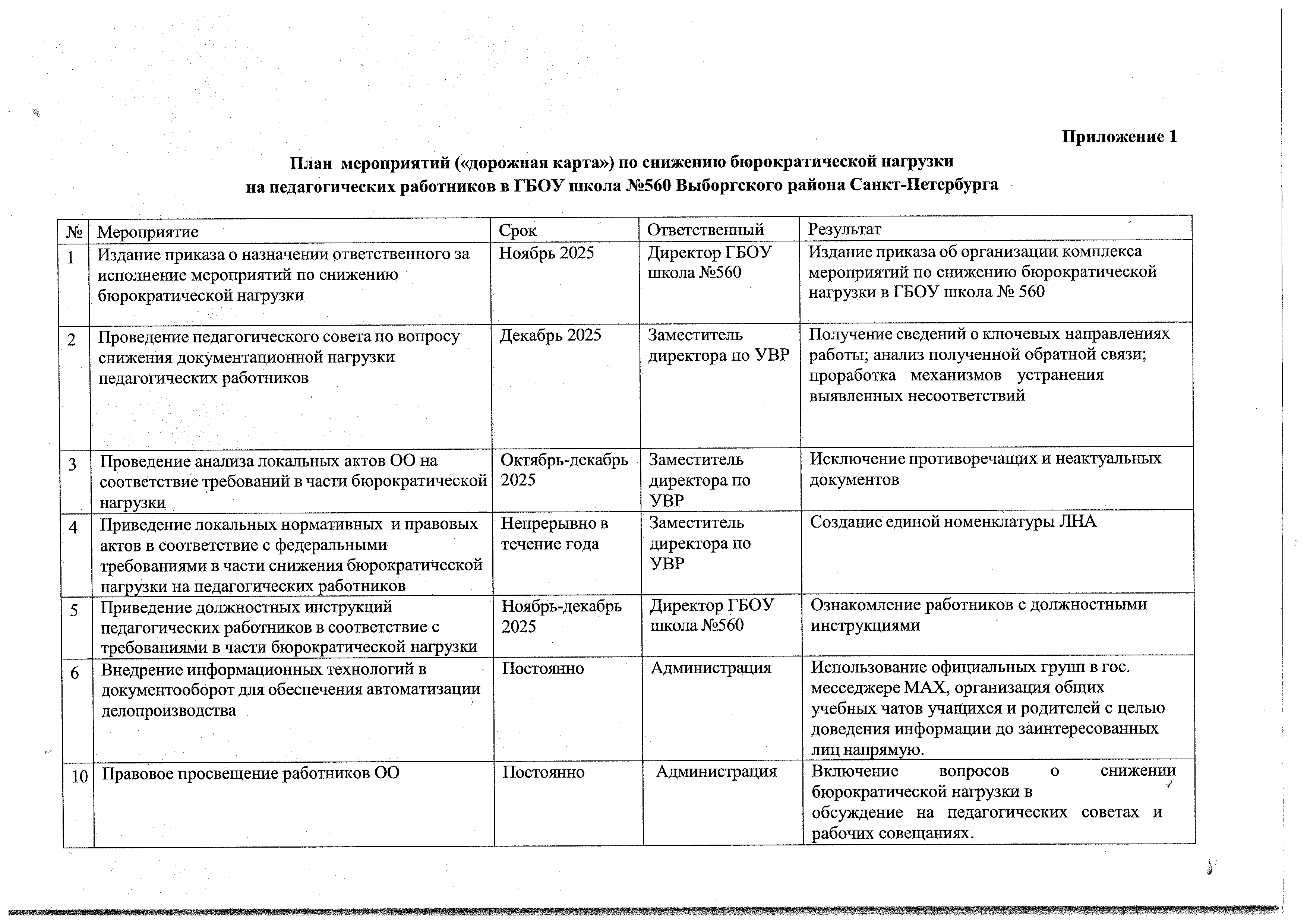 1. Утвержден План мероприятий по снижению бюрократической нагрузки на педагогических работников на 2025-2026 годы.